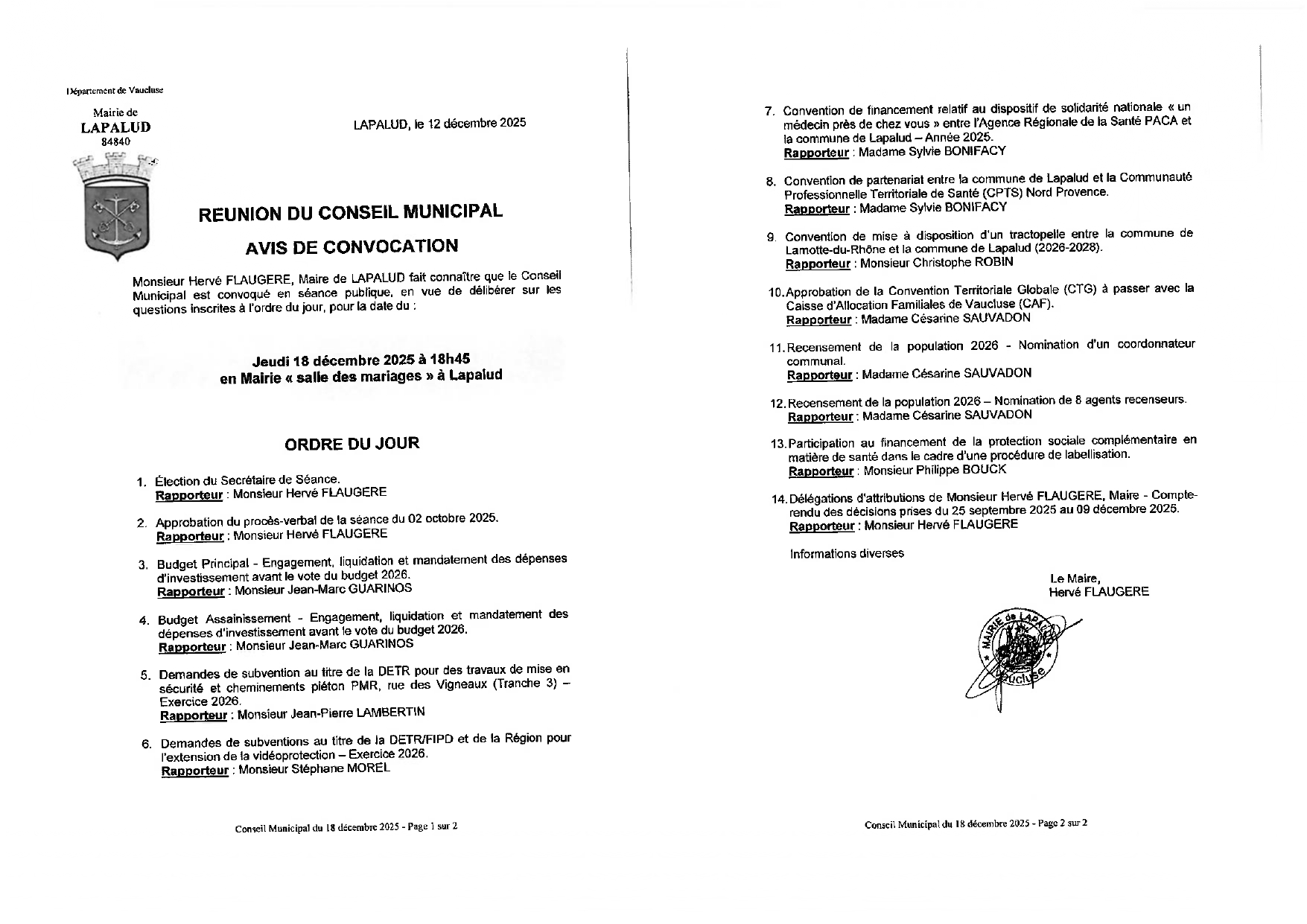 Conseil Municipal le 18 décembre 2025 à 18h45