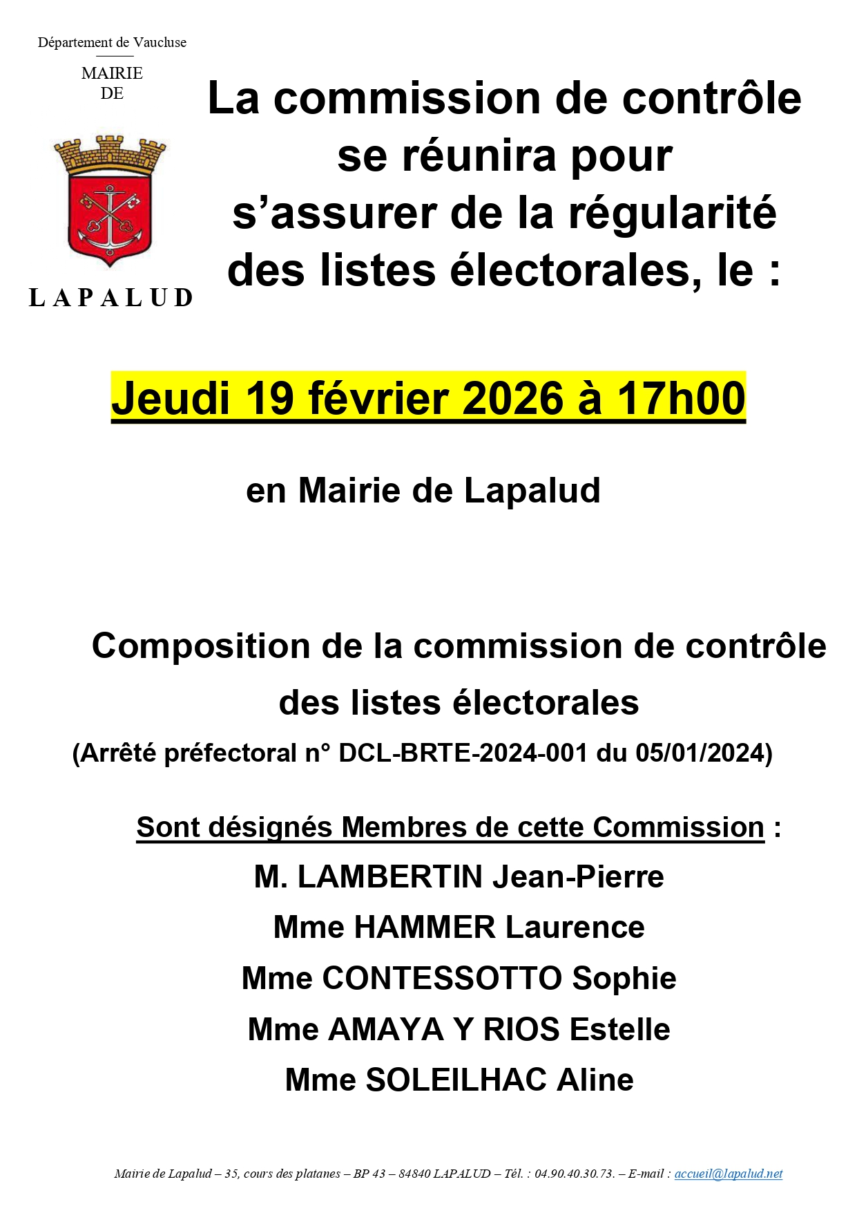 : mairie - 35 cours des Platanes, 84840 Lapalud : 04 90 40 30 73 : accueil@lapalud.net